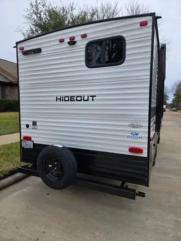 2025 Keystone Hideout Sport 240BH – Family-Friendly Adventure Awaits!Experience the great outdoors in comfort with the 2025 Keystone Hideout Sport 240BH. Designed for families, festivals, tailgates, and road trips, this trailer sleeps up to 8 people and is ideal for weekend getaways, national park explorations, or attending your favorite events. With a lightweight design and dual axle for easy towing by half-ton trucks or larger SUVs, it’s perfect for your next adventure.Why Rent This RV? The Hideout Sport 240BH offers the perfect balance of comfort, convenience, and stability. It features a spacious living area, fully equipped kitchen, and a full bathroom, ensuring everyone enjoys the journey. The dual axle and weight-stabilizing hitch make towing easier and smoother. We also offer optional amenities like bedding, cookware, and camping essentials, so you can focus on having fun without the hassle of packing everything yourself.Key Features:Sleeps 8: Queen bed, double bunk beds, convertible dinette, and sleeper sofa Fully Equipped Kitchen: 3-burner stove, microwave/air fryer, fridge Full Bathroom: Shower, toilet, vanity Entertainment: Bluetooth stereo system, flat-screen TV Climate Control: Air conditioning and heating Ease of Towing: Dual axle, weight-stabilizing hitch, towable by half-ton trucks or larger SUVs Weight Capacity: 2,020 lbs cargo carrying capacity Ample Storage: Inside and out for all your gearIncluded Amenities:Bedding and linens Towels and washcloths Kitchen cookware 4 Camp chairs Outdoor rug Freshwater hose and water filter Toiletries (shampoo, conditioner, soap, toilet paper) Basic cleaning suppliesSee ADD ONS for Extra Gear You May Need or Want:Brake Controller (Available for rent if needed) Outdoor table Portable Blackstone griddle Slant leg awning Additional blankets and pillows Additional camping chairs Portable outdoor heater Generator Extra coolerAdditional Info:Weight: 4,800 lbs Length: 28 ft Freshwater Tank: 44 gallons Brake Controller Requirements: Required for towing. Available for rent if needed. Delivery Available: Let us bring the RV to your preferred location for an additional fee. Book your next family adventure, festival, or tailgate today with the 2025 Keystone Hideout Sport 240BH!What's included• Included Amenities:Bedding and linens Towels and washcloths Kitchen cookware 4 Camp chairs Outdoor rug Freshwater hose and water filter Toiletries (shampoo, conditioner, soap, toilet paper) Basic cleaning suppliesOther things to noteNo Smoking is allowed in the trailer. Smoking inside will result in forfeiture of full deposit due to the extensive cleaning needed. We do charge a late fee of $35 an hour, if prior arrangements have not been provided. If you are going to be late due to unforeseen circumstances, as long as you keep in touch with us, no fees will be charged.